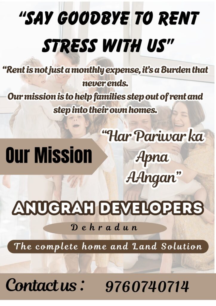 Our mission is to create more than just structures — we build trust, transparency, and lifelong relationships. As a leading property dealer in Dehradun, we are committed to delivering homes that bring peace, pride, and long-term security to every family we serve. Whether it’s buying, selling, renting, or constructing your dream space, our goal is to make your journey simple, stress-free, and rewarding.We understand the emotional burden and rent stress many families face due to rising costs and unstable living conditions. As specialists in real estate in Dehradun, we focus on providing affordable, future-ready residential solutions, so you no longer have to worry about yearly rent hikes, unexpected shifting, or uncertain tenancy.With ethical practices, quality construction, and client-first values, we aim to shape communities that stand strong for generations. Our mission is clear and heartfelt: